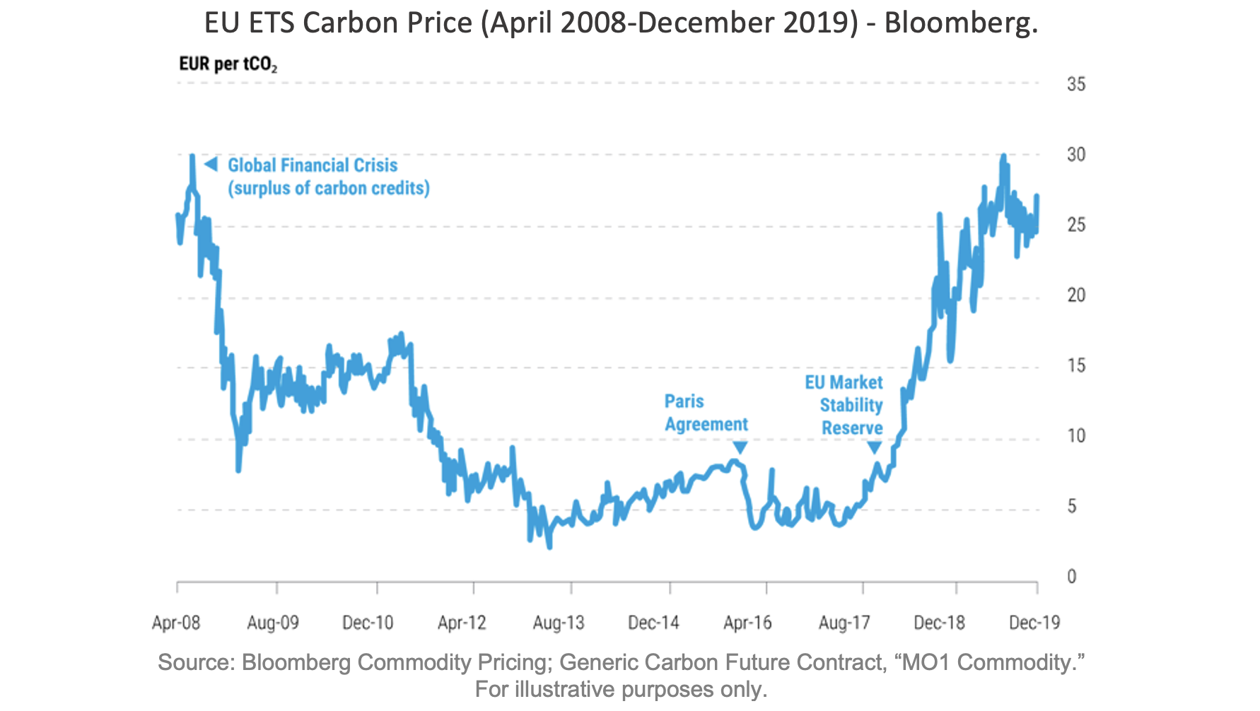 With companies stepping up efforts to mitigate their carbon-intensive activities and set science-based emission reduction goals, global carbon markets are likely to provide a natural bedrock for policy development and financial innovation. As a result, financial institutions are increasingly applying carbon pricing scenarios in their disclosure of climate-related risks and opportunities in a variety of sectors.